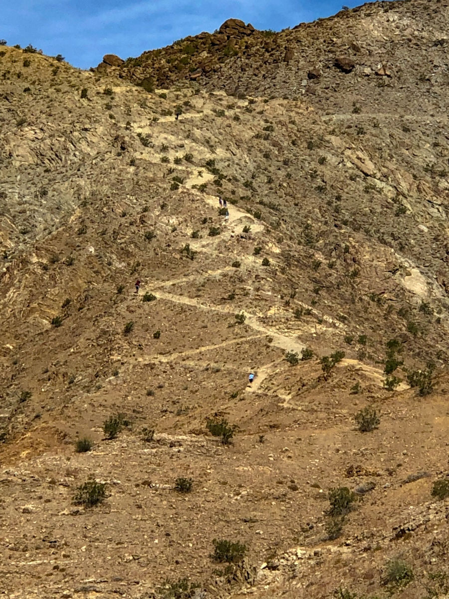 This used to me mainly a mountain biking trail, hence the name. Now hikers both snow birds and locals use it for regular exercise. Easy access. In town. Quick and painless!