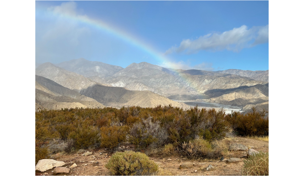 The hike begins at the Canyon View trailhead, near the Whitewater Preserve entry, and rapidly ascends up Canyon View Trail to eventually intersect with the Pacific Crest Trail (PCT). We soon get great views of the entire Whitewater wash and surrounding hills and should see a fair amount of desert flowers in bloom at the upper elevations. We continue northbound, down the PCT, back to the valley floor where we take a lesser-used trail up to Rainbow Rocks, our turnaround point. From here, we head back down the trail, then northbound on the PCT for a short distance. We return, passing the Whitewater Preserve ranger station and walk the wash to our cars.