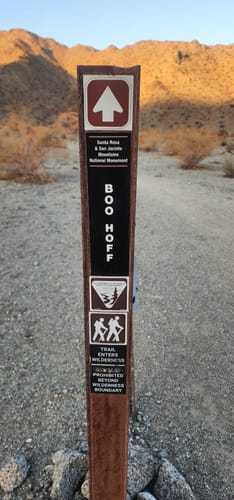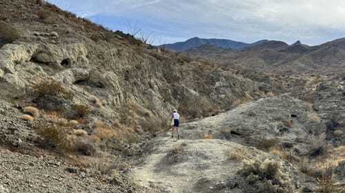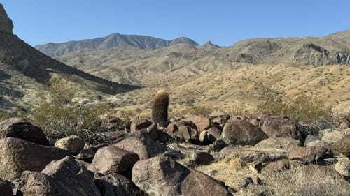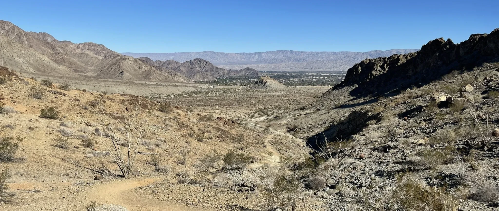 These two trails take us into the Santa Rosa foothills south of La Quinta Cove. The first 1-1/2 miles are quite easy with a gentle incline on a sand/gravel surface. At that point, the trail gets steep and narrow for 1/2 mile up to a vista point. The remaining 2 miles are very pleasant, winding down the Bear Creek wash among rock formations and desert plants of the Bear Creek wash. Overall, this hike offers a little of everything.