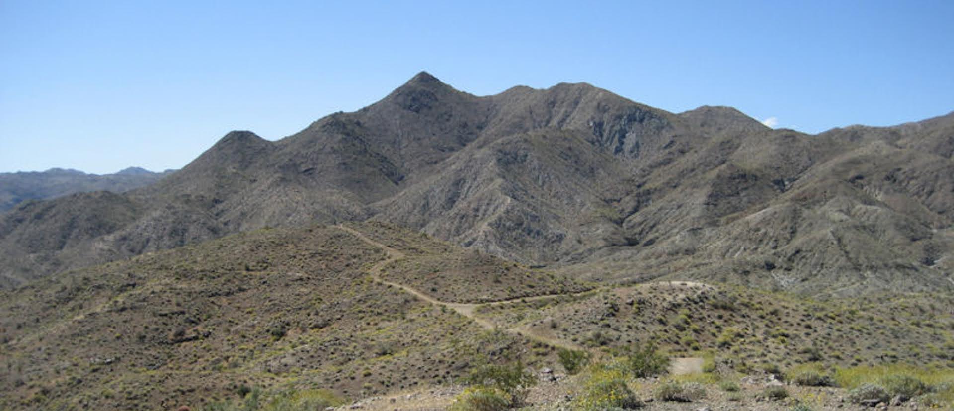 For the next two miles, we mostly have gentle ups and downs leading to a long downhill that ends in a wash at mile 3. The most challenging part of the hike begins here, starting with a short rock scramble out of the wash (maybe 15 feet up, but child’s play compared to stuff at Magnesia Falls, for example). For the next 1.6 miles the hike becomes progressively steeper until we reach the top of Murray Peak. The total elevation gain for this segment of the hike is about 1,300 feet (average grade of over 15%).