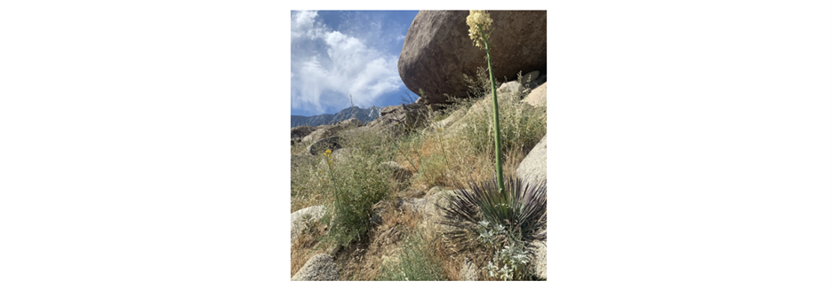 The trailhead begins after hiking about a mile up the access road, a steep easy warm-up for the trail ahead. The views are fantastic and get better as you ascend the trail on long, easy-going switchbacks. This trail provides some, if not the best, views of the pass and desert below, all under the towering mountain right in front of you.